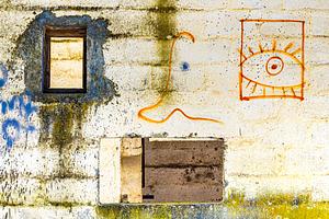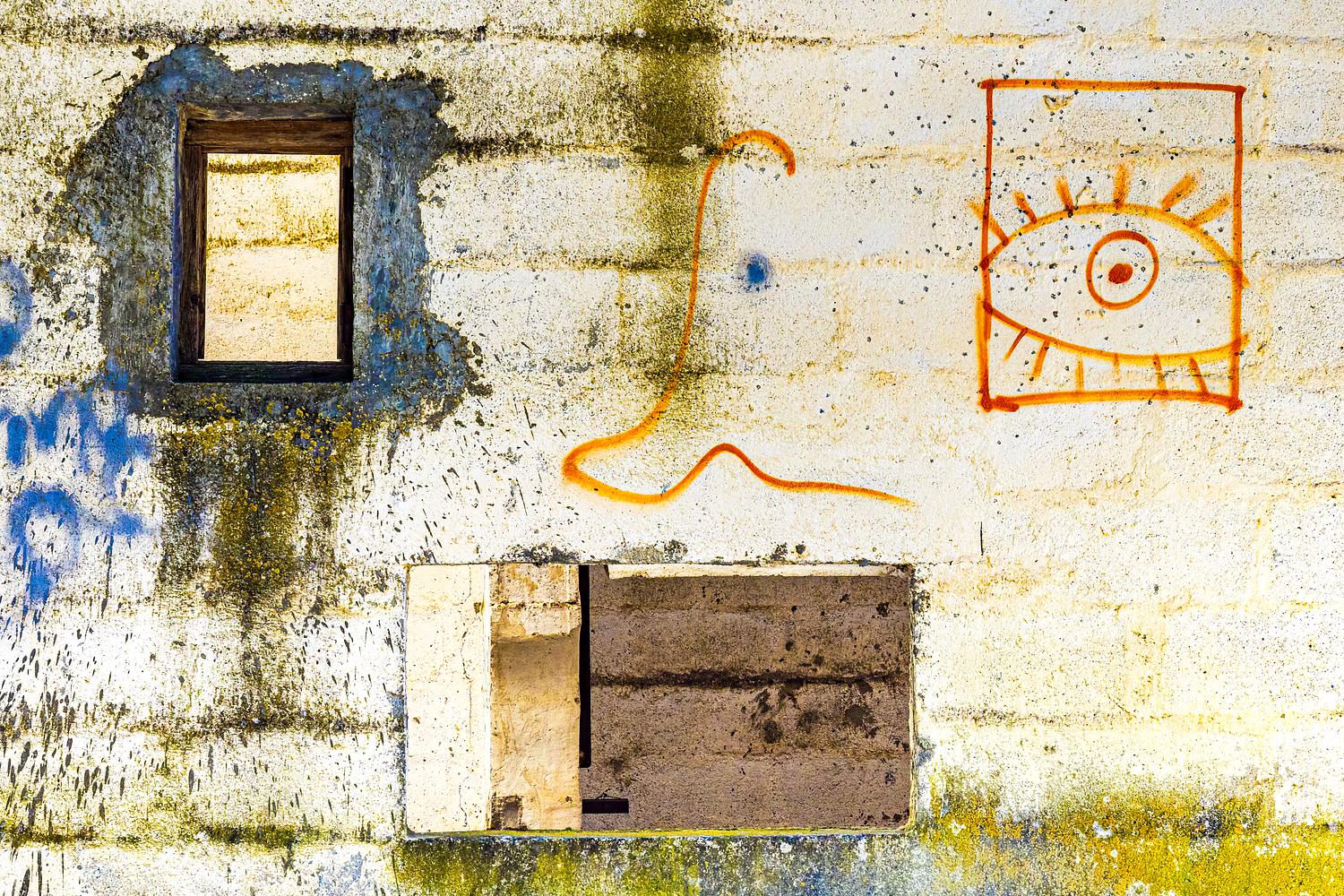 Walking through a sparse wooded area in the hills of AndalucĂ­a I came across a clearing in which there was an abandoned building. Some local artists had been there before me, it would seem.