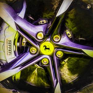Nick Mason, the drummer for Pink Floyd, has a collection of Ferraris. Each has four wheels. This is one of them after a bit of software artistry. Looks great printed large on a wall.