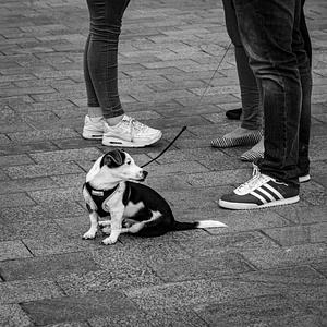 A modern take on that dog. You know the one. I think he got bored with the horn of that old gramophone and has now taken an interest in footwear.