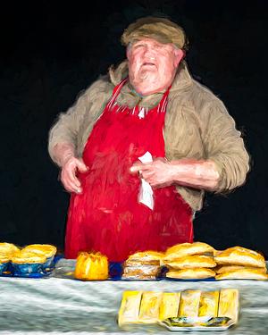 Far be it from me to comment but do you think our substantial pie man here has been consuming his stock? I think so. This is a 'painterly' version of a photograph I took during a market day in Shaftesbury, UK in 2019.