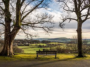 In Shaftesbury, Dorset, UK there is an Abbey and outside along The Abbey Walk there are trees, benches and stunning views. This is my favourite one.