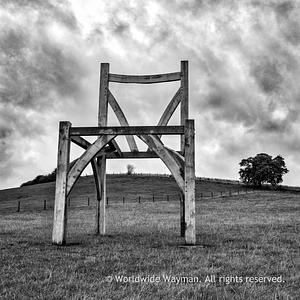 In a field near a barn. Why? Maybe there are giants. Something's missing, though. Perhaps it's really just a giant commode.