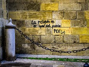 "Die Religion ist das Opium des Volkes". Or, as we see here, the Spanish version. That nice Mr Marx was right about something anyway. But with an ulterior motive, of course.